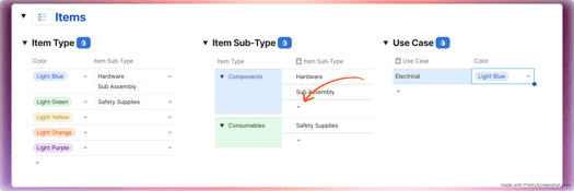 This tutorial will guide you through creating Item Types, Item Subtypes, and Use Cases in your Arda workspace. These classifications help keep your inventory organized, speed up production workflows, and make material flow more predictable. You’ll learn how to build these from scratch, assign colors, and keep them structured for easy searching.
