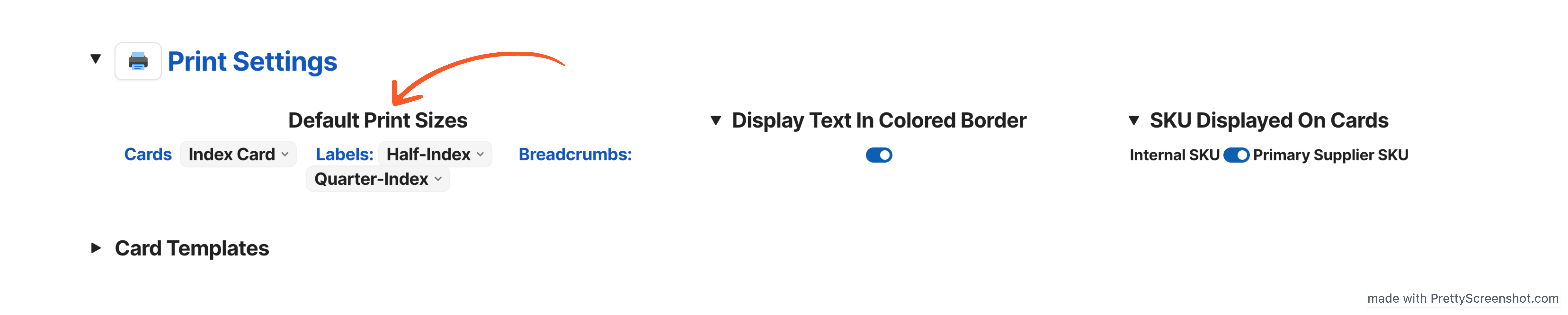 Default Card Size (e.g., Index, Half Index, Business Card)